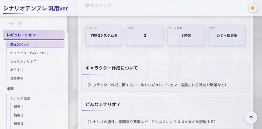 TRPGシナリオシートエディターは、お洒落で読みやすいシナリオシートを簡単に作成できる、Webエディターです。私がほしい機能を詰め込んで誠意制作中となります。