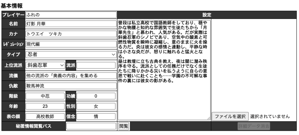 よく聞かれるんですが、継続キャラだとPCハンドアウトでドラマを作るのが難しくなるんですよね。シノビガミって「とんでもない秘密をもらって『うわこのシナリオやばい』」ってなるのが醍醐味じゃないですか。